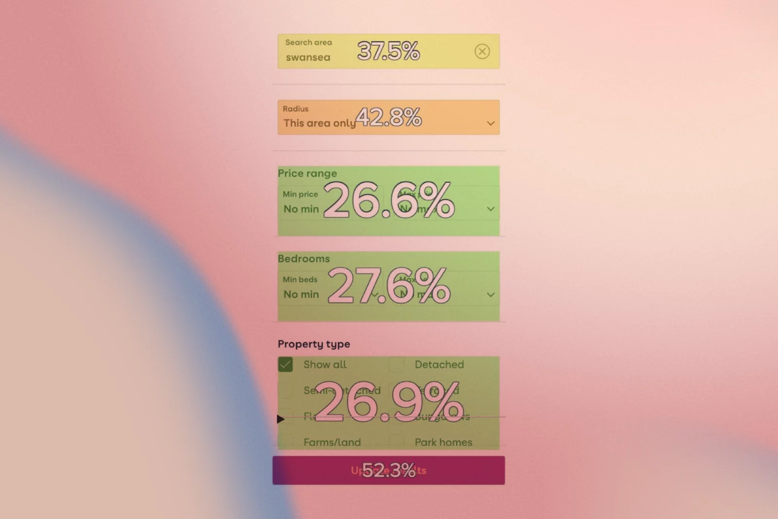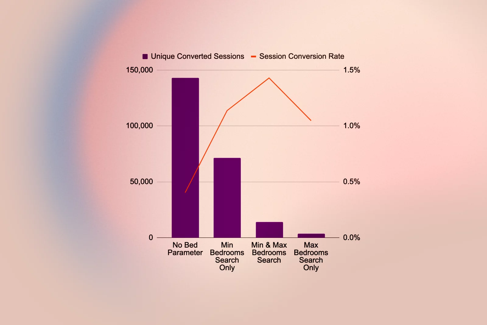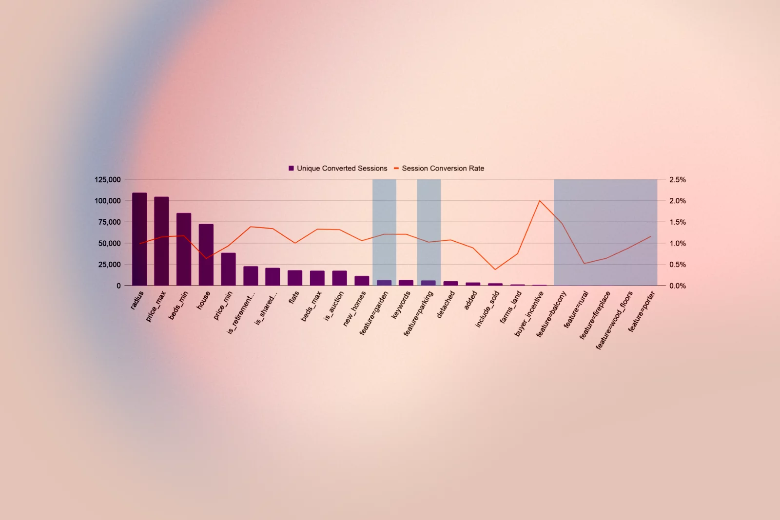 - For Sale: users are more likely to set a maximum price and minimum bedrooms than the opposite, and those only using a minimum price filter perform as poorly as users with no price filter, indicating “dream browsing”.