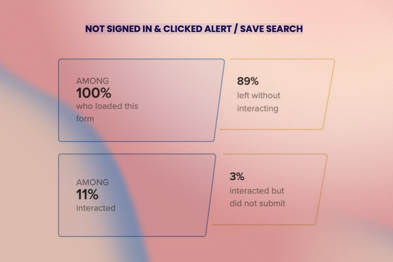 - Streamlined save search sign‑up flow that respects user effort and encourages account creation, improving long‑term value from high‑intent users.