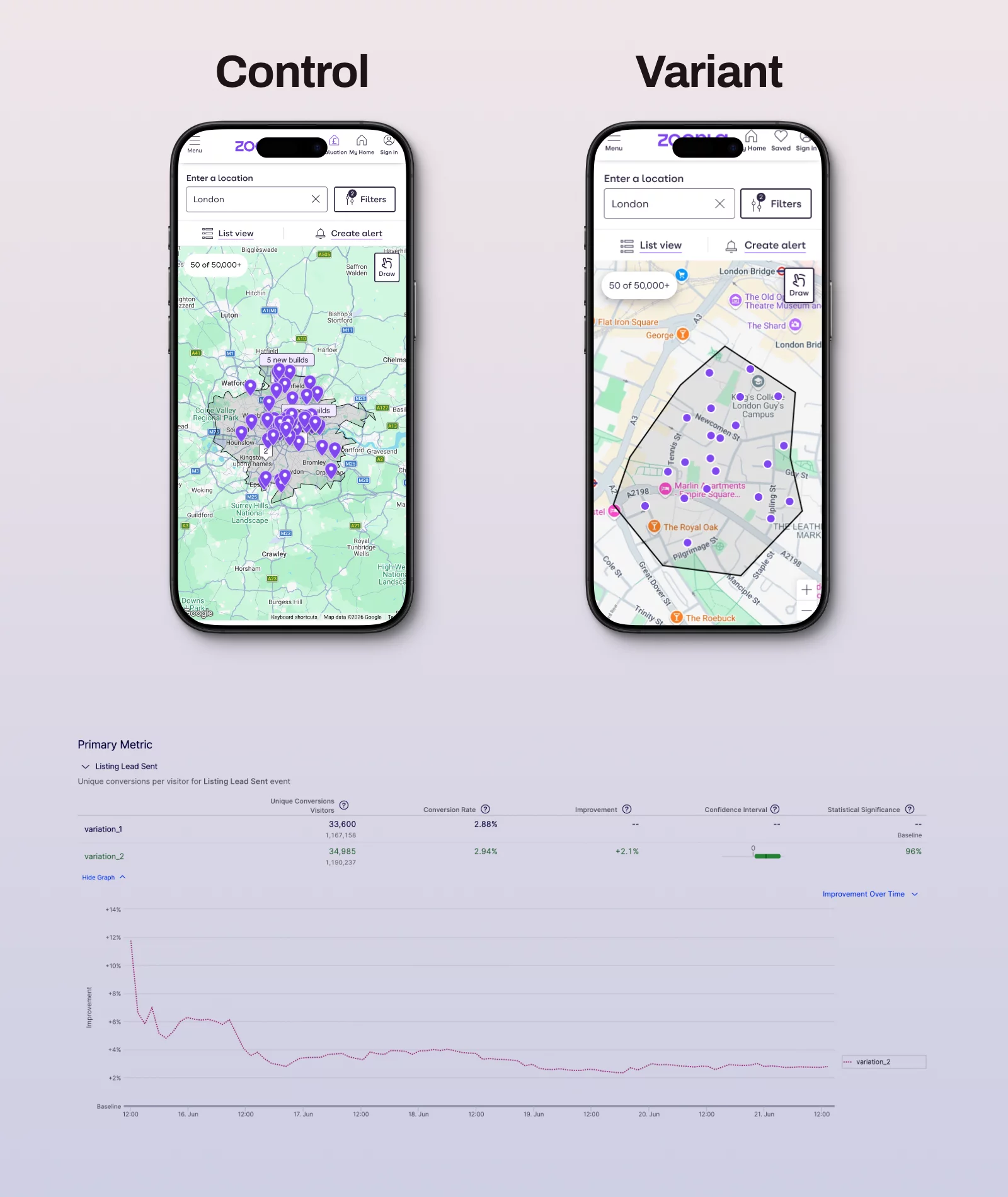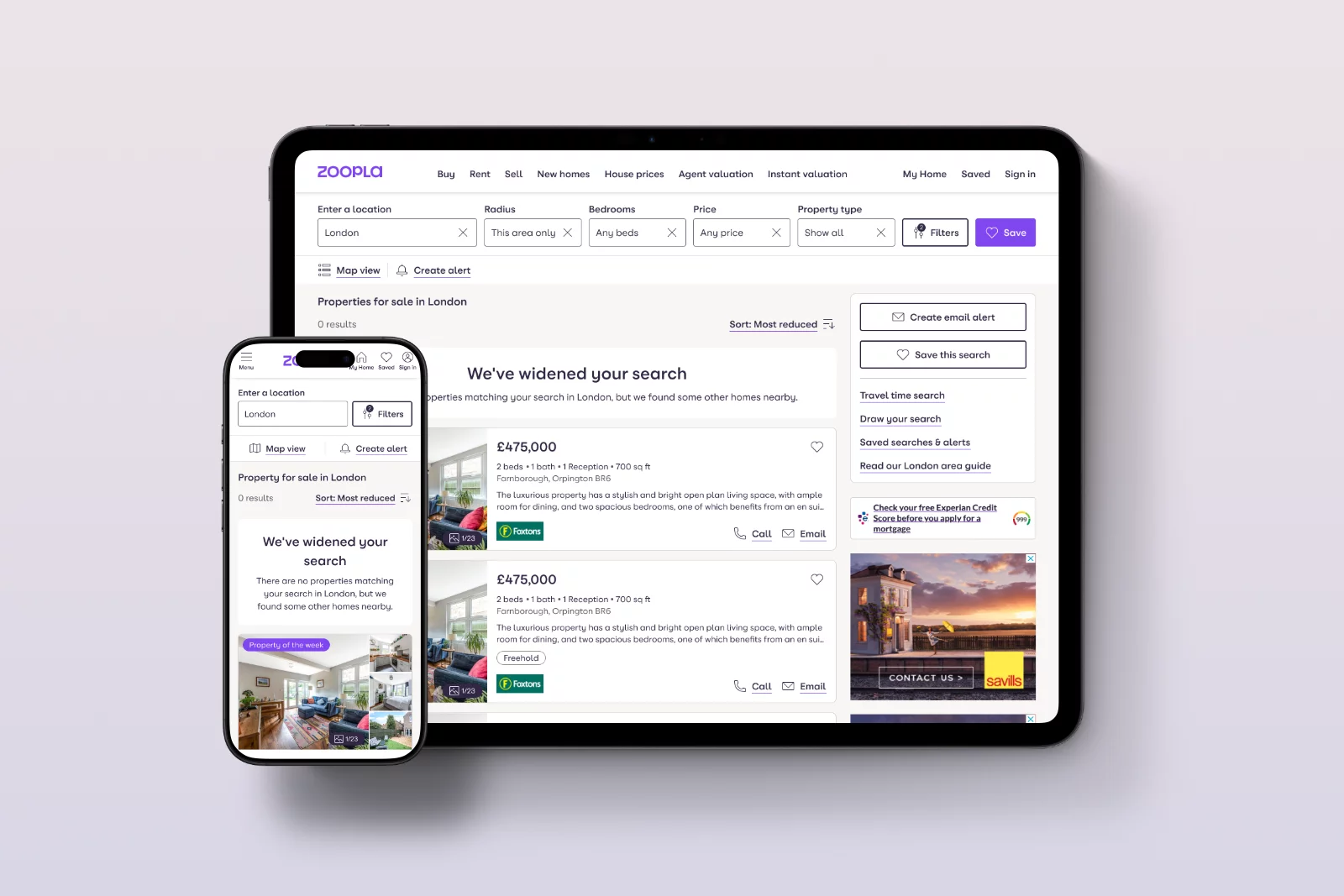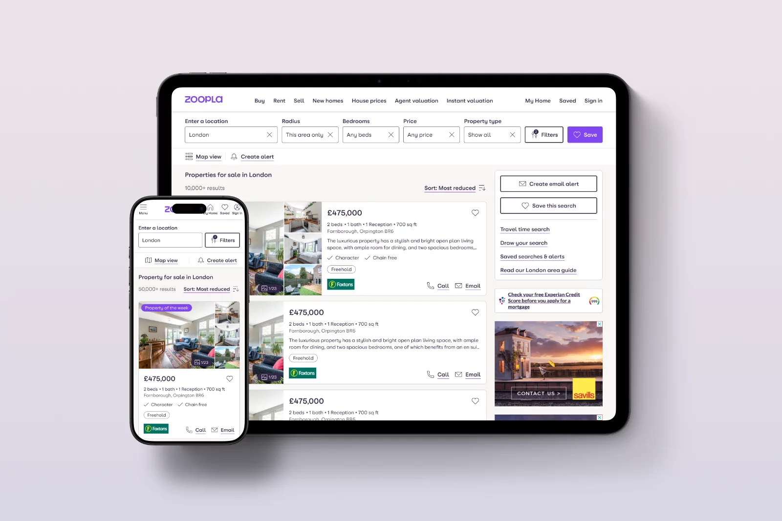 As the Senior Product Designer, I had the opportunity to lead an end-to-end redesign of Zoopla’s search experience by thoroughly understanding the consumer and business problems through analytics, behavioural research, stakeholder discovery, and validating solutions through design, usability testing, and A/B testing.