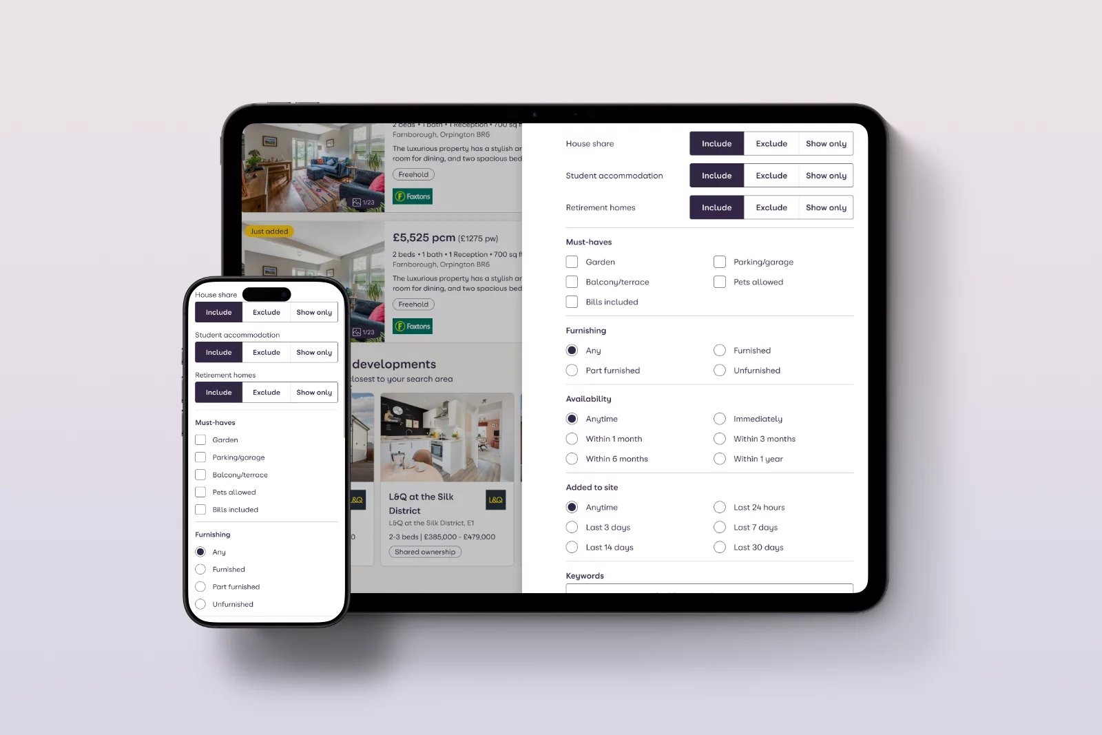 - Surfaced high‑intent niche filters (Help to Buy, retirement home, shared ownership, auction, furnished state, bills included, rental term) in more discoverable clusters for relevant channels.